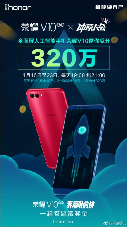 1月19日晚21:00,直播答题类节目冲顶大会与人工智能手机荣耀V10联合推出“人工智能”专场。这是双方为其8天(1月16日-1月23日)合作中的唯一一场专场节目,“AI”则成为当晚的答题关键词,据悉,本次节目中所有题目都均与人工智能相关,其中更是有4道题与荣耀V10的产品点直接挂钩,占比三分之一。