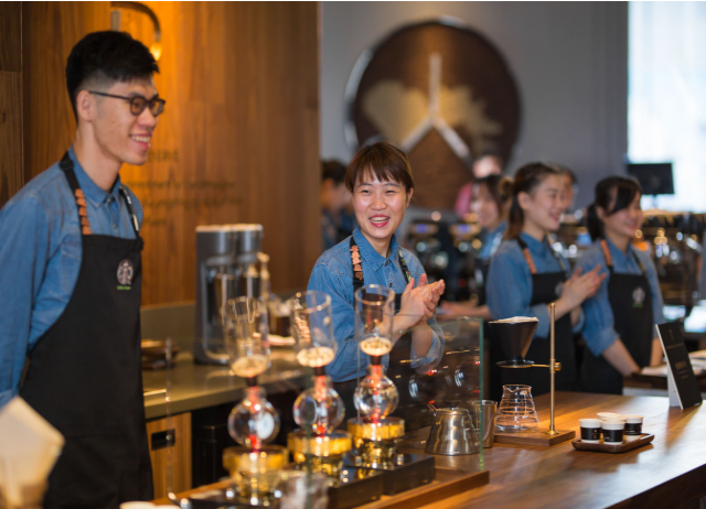 “来了就是深圳人”,是深圳的城市口号。在这里,汇聚了来自全国各地的梦想家,星巴克华南区首家旗舰店的“梦想团队”同样集结了来自全国各地的40名卓越的咖啡大师,且每一位都获得了星巴克咖啡大师进阶中包括黑鹰咖啡机、虹吸壶、手冲等全部7个项目的认证,他们不仅代表了星巴克多年来对咖啡所保持的最高热情与专注,更代表着星巴克伙伴源源不断的创造力。