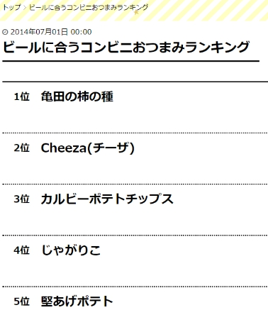 日本goo网站曾针对500名男女性做了调查,选出了25个和啤酒最搭的便利店零食,排在第一名就是日本国民零食品牌龟田制果的柿种。