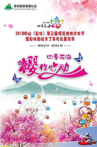 万众期待的2018中山(泉林)第三届樱花旅游文化节即将于2月13日在泉林山庄四季花海揭开帷幕,一直持续到3月10日,在春节期间及接下来的赏花、踏青游,广州、深圳、珠海等广东省乃至整个华南的目光都将聚焦泉林山庄,只为前往赏花,摄影留念,沉醉于这浪漫的樱花树下。
