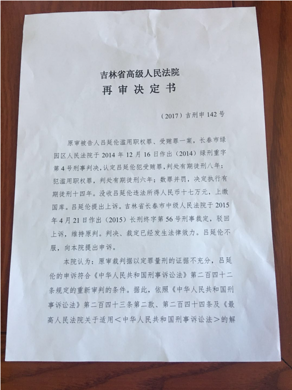 好消息传来,在全面贯彻党的十九大精神之下,吉林省高级人民法院终于下达了再审决定书!这是对党中央依法治国精神的践行!