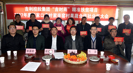 在当天的分红大会上,赵建根高兴地向社员们介绍,2017年通过吉利的帮扶,合作社基础设施得到了稳固改善,每个大棚可增收1.3万元,并且至少可以保证使用8至10年不大修。2017年除去必要的开支,并留足来年发展备用金,一共可以拿出26万元的资金用于分红,实现收益翻番,保证村里没有劳动力的建档立卡户也能从该项目中享受1400元的分红。