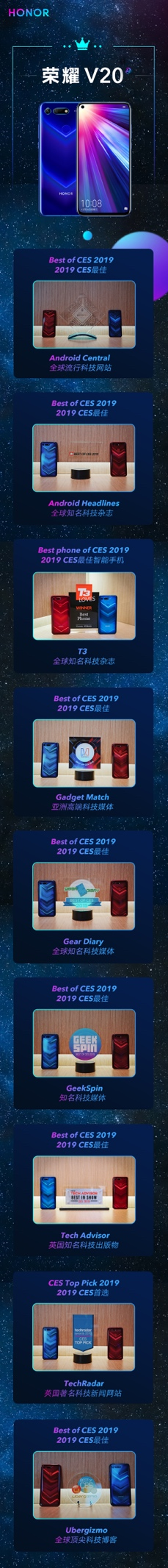 不仅是国内,荣耀V20也备受海外媒体赞誉,在刚刚落下帷幕的国际消费类电子产品展(CES)上,荣耀V20一连斩获包含全球知名科技杂志T3、全球顶尖科技博客Ubergizmo、英国著名科技新闻网站TechRadar等海外权威科技媒体在内的11项知名媒体大奖,实力显而易见。