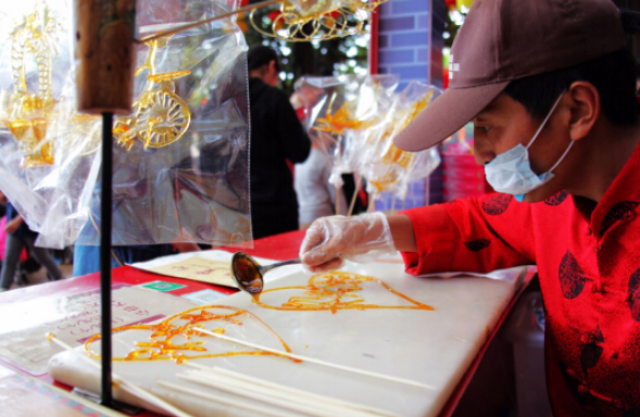 (“老广”们熟悉的糖画手艺)