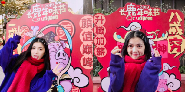 “不瘦10斤不换头像”、“冲鸭!”、“最大的锦鲤是我”……在长鹿旅游休博园各处,一系列网络热词热句与俏皮八戒“同框”,引来不少游客驻足围观。原来,喜迎金猪贺岁年,长鹿以“八戒游园”为概念,在园区各处设立了八个“八戒”形象的打卡点,八只憨态可掬的生肖猪被绘制成生动的拟人形象,邀请游客新的一年迎接新的风气,一起“戒土戒肥戒丑戒丧,戒懒戒怂戒蠢戒穷”。