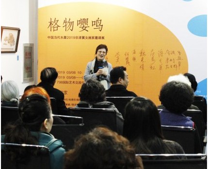 中国女画家协会主席孔紫女士为展览开幕致辞,她指出:“格物嘤鸣”是中国女画家协会今年推出的一个展览品牌, “格物嘤鸣”概括了女性艺术家尚艺自律、为艺术理想共同逐梦的初衷。本次应邀参展的22位老中青三代女画家艺术成就卓著,她们用作品,展示了京津冀女画家深入生活、扎根人民,在传统与创新的艺术道路上辛勤耕耘、不懈探索的艺术成果。相信本次展览将会为推动京津冀女美术家艺术交流和创作起到积极地促进作用,为京津冀协同发展的国家战略做出女画家更大的贡献。