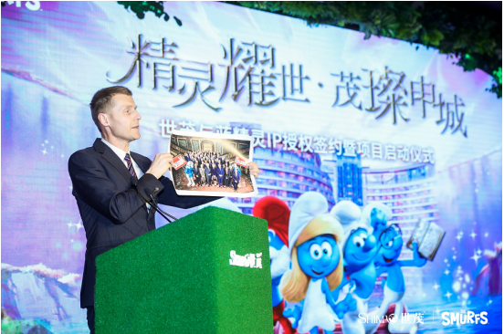 2019年3月20日,世茂集团与蓝精灵版权方IMPS (International Merchandising Promotions & Services S.A)在上海外滩茂悦大酒店召开发布会,共同宣布风靡全球的国际动漫IP形象——蓝精灵,将入驻位于上海佘山国家旅游度假区的上海世茂精灵之城主题乐园。这是继Hello Kitty之后,世茂集团在主题乐园领域再次携手世界文化IP,致力为沪上打造又一国际文娱新地标,以带给消费者更多互动新体验,引领上海乃至长三角地区主题乐园消费市场再升级。