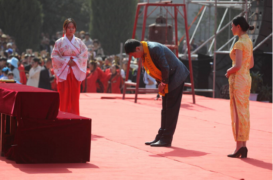 上午9时38分大典正式开始,由守陵儿女组成的锣鼓方阵表演,以及象征着全国34个省级行政区对始祖母华胥氏无限崇敬之情的34通鼓声,象征着九九归一,中华统一的9响鸣钟,在华胥陵上空久久回荡。