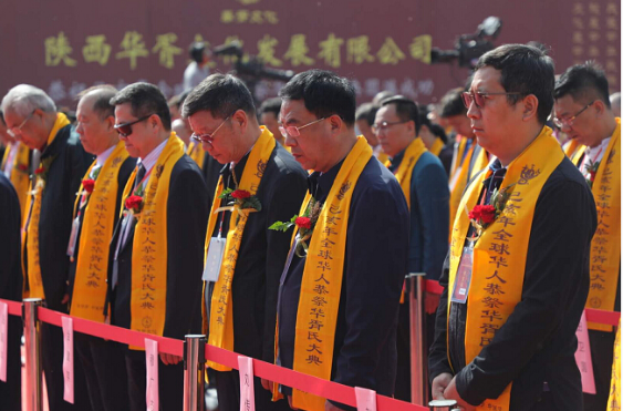 4月7日上午,己亥年全球华人恭祭华胥氏大典在陕西省西安蓝田华胥陵广场隆重举行。来自美国、加拿大、新西兰、罗马尼亚等国家的海外侨领,以及香港、台湾代表团,与社会各界代表组成十个方阵齐聚华胥陵,隆重纪念中华民族的始祖母华胥氏。