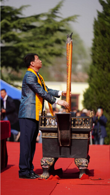 由华胥文化产业创始人,爱心企业家李奇先生代表全球中华儿女点燃三柱高香,敬祭始祖。除了华胥氏以外,伏羲、女娲、炎帝、黄帝、蚩尤均以牌位作为配祭。六祖共祭,是对远古先祖们开拓中华文明历史伟大功绩的由衷缅怀,是中华各民族一脉相承的历史见证。