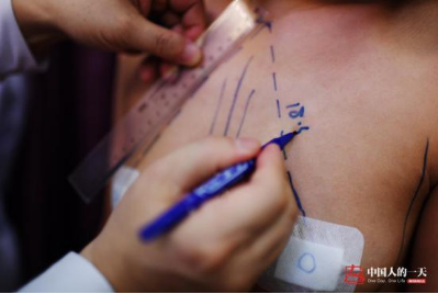 王新灿医生正在为李文进行术前划线。