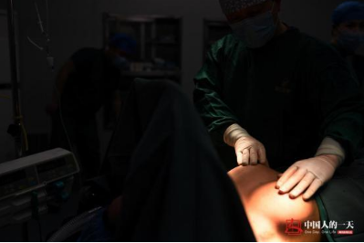 王医生在李文胸部进行药物注射,目的是为了局部加强麻醉,将腋下切口的疼痛度降至最低。全身麻醉约2-3分钟后,手术即可正式开始。
