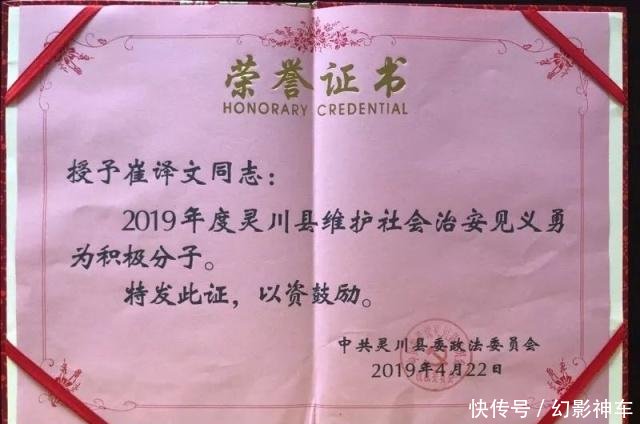 3月10日晚,桂林电子科技大学内,男学生梁某因感情纠葛,将同校的女生梁某某捅伤。女大学生崔译文见状上前阻止行凶,用身体护住女同学,不幸又身中8刀。4月28日,崔译文被学校属地的灵川县政法委授予“见义勇为积极分子”荣誉称号。