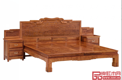 南枝红《缅甸花梨卷草拐子纹大床三件套》