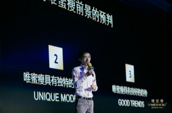 随后,公司CBO欧阳海丹先生对VMESHOU(唯蜜瘦)品牌运营做了详尽阐述和解析,并表示公司接下来会加大在品牌建设方面的矩阵式投入,进一步彰显品牌特色、形成品牌优势,让VMESHOU(唯蜜瘦)年轻、时尚、活力、健康的品牌形象进一步深入人心,影响并打动消费者,最终形成新的消费偏好和品牌认知。精彩的演讲让与会人员对VMESHOU(唯蜜瘦)未来的品牌规划有了进一步清晰的了解。