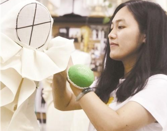 学外贸英语的蒋永萍是一位手工艺发烧友,喜欢各类手工制作。大学毕业后,为了梦想去北京进修,方向有两个:一个是古文物修复,另一个是服装设计。机缘巧合遇见了北京服装学院的一位老教授,看中了她的潜质,力邀她加入了他的服装工作室。