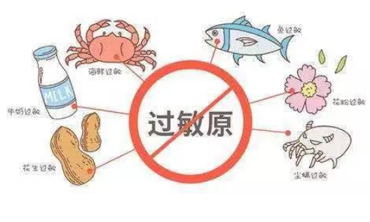 食物性变应原:鱼虾、鸡蛋、牛奶、面粉、花生、大豆、药品等;