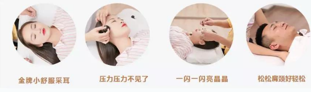 采耳服务不再是沐足城里面的附带项目,它将会成为深受年轻人喜爱的高端精致采耳体验。耳道将百年传统手艺+现代休闲体验带给现代都市人,提供减压放松的舒服体验,已成为采耳领域的领先者。