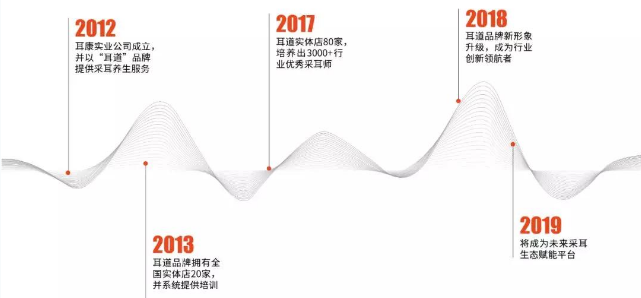 抱团取暖,合作共赢。截至2019年6月,网络搜索关键词“耳道”每天达120000人次,【耳道精致采耳】以280+人的管理团队为班底,如今已经培养输出精致资深采耳师超1500人,服务90+加盟店,服务达1215万人次,线上预约订购到店消费转化率85%,平均每天每店到店60人,客均单价近200元/人,平均每人6天就产生复购,达到高关注,高流量,优服务,高复购率的良性消费循环系统。