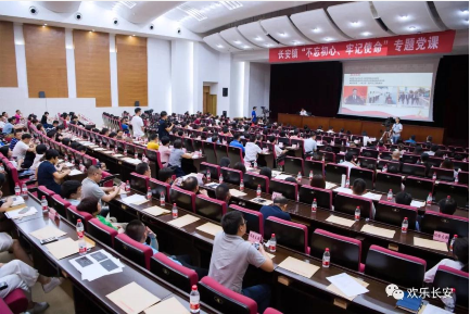 7月1日下午,长安镇举办“不忘初心、牢记使命”专题党课,镇委书记叶孔新主持专题党课,作“以治水为抓手,努力为人民谋幸福”主题党课报告。中山大学马克思主义学院教授谭毅,作“不忘初心、牢记使命”专题党课报告。各社区、各党组织设立分会场,对专题党课进行全程电视直播,全镇共有6000多名党员参加党课报告会。