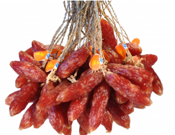 腊肠是广式腊味的主打品种,优质的腊肠,肠衣透薄如纸,口感衣脆、汁香、肉鲜,咸中微甜,口齿留香,让人欲罢不能、吃完还想吃。而劣质的腊肠,口感肥腻,肉质松散,无鲜香味,吃一口已不愿尝第二口。为了不让自己的胃失望,因此选腊味一定要选有口皆碑的老字号。