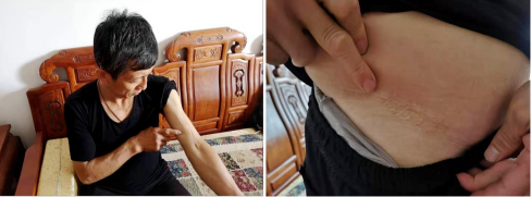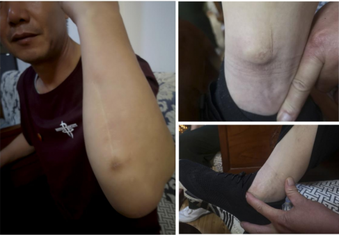 崔桂龙向记者展示自己身上的伤痕