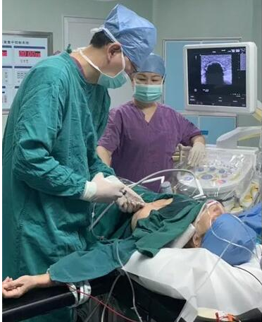 主刀医生副院长牛立志教授介绍:“因为这位英国女士的本人只接受冷冻治疗,我们选择在冷冻手术中同时取活检,活检证明她确实是乳腺癌。手术中,我们插了两根针,把她的肿瘤完全覆盖,冰球逐渐扩大让肿瘤完全冻死。术后三天,她就可以出院回家了。”