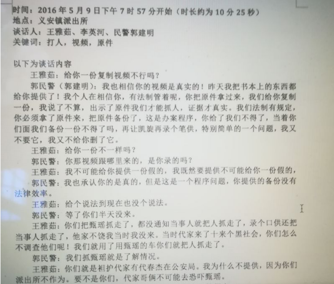 出乎他们意料的是,派出所不立案。一气之下,他们把打人视频发到网上。网上反响不小,派出所这才一边悄悄立案(还抓了代春满、代春伟),一边对王雅茹夫妇说“不提供原始视频不能立案”。