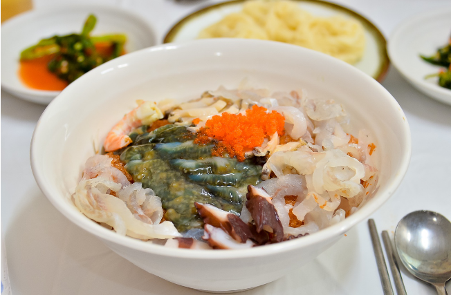 此外,居住在海边的韩国人还喜欢辣拌生鱼片,新鲜的鱼肉质脆而韧,清凉酸辣,是盛夏消暑佳肴。对了,刨冰和冰水也是韩国年轻人饭桌上离不开的饮品。不过,如果从小没有饮冰的习惯,我们还是应该根据自身体质适当选择冷饮。