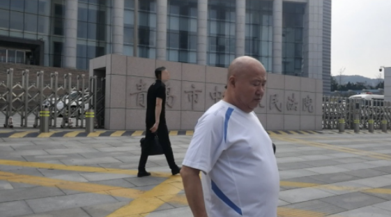 被黑恶势力赶下大公岛的李军林在法院门口应诉