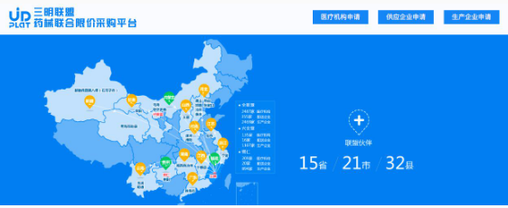 2016年,在国务院医改办、国家卫计委的指导下,最早探索药品集采的三明市正式成立“药品耗材联合限价采购三明联盟”(简称三明联盟),构建了涵盖药品、耗材(含试剂)、中药饮片等相关采购服务,实现联采、交易、结算与监管全流程一体化的跨区域联合采购平台。该平台作为联盟唯一官方服务平台,由微医投资的海西医药交易中心协同三明联盟共同打造,联盟成员已覆盖全国15省的21市32县。