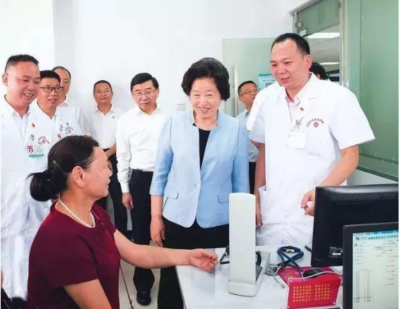 (国务院副总理、国务院医改领导小组组长孙春兰在三明市尤溪县西城镇卫生院调研 图片来源:福建医保局)