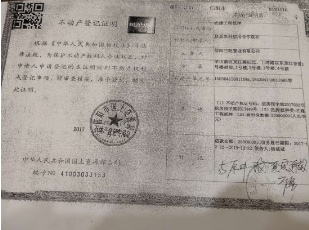 何先生眼看着贷款批不了,急得茶不思饭不香,没办法再次找到杨建请求帮忙,杨建说必须有实物作为担保抵押,没办法,只好听之任之。杨建还是之前的套路,让何龙利以开发的楼盘作为担保,他来找贷款人还是以个人的名义来操作这笔贷款。很快何龙利在息县农商行办理了质押手续,贷款人这次又换成了杨斌斌,由何龙利以公司开发的商住楼作为抵押担保,申请贷款为2500万元。