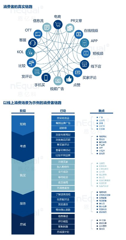 真实的消费者链路是“一团乱麻”:首先,消费者并不会界限清晰地呆在某个“固定的位置”,如 AIPL 模型中的认知、兴趣、购买和忠诚阶段;其次,消费者每次的动作或行为路径有可能完全不一样,在所有的触点中,消费者是随时都可能出现在任意一个触点上的;然后,消费者路径并不是单向路径,常常会在各个触点和阶段上反复循环。