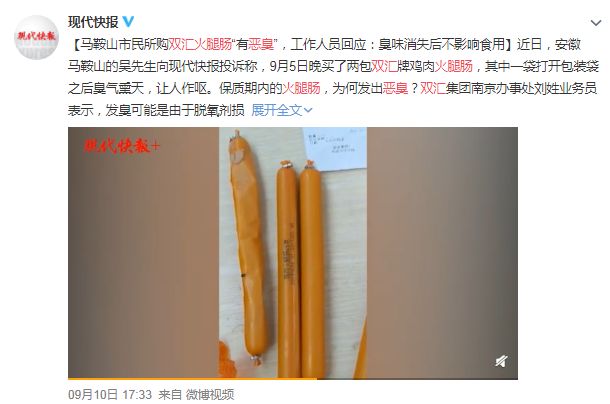 双汇火腿肠有恶臭 工作人员回应臭味消失后不影响食用