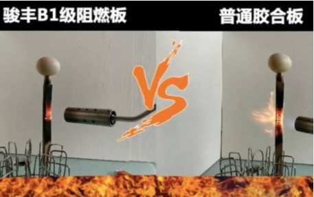 骏丰B1级阻燃板与普通胶合板的对比试验: