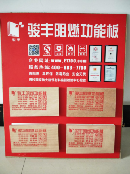 ·骏丰阻燃板核心特优势——阻燃、环保:极大延迟燃烧的速度,有害气体及物质极少。