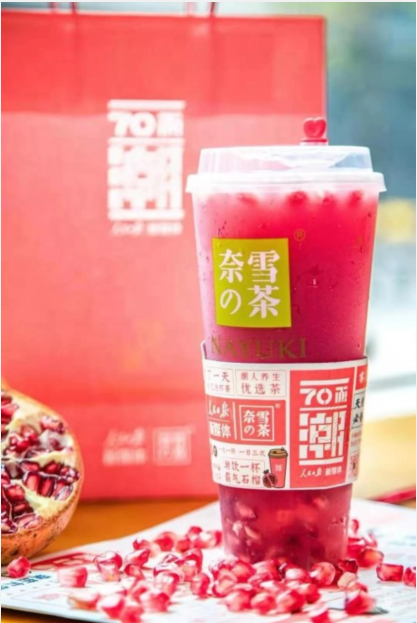 9月10日,人民日报发起“中国正当潮,70而潮”的主题活动,向国家和传统文化致敬。作为参加此次活动的唯一新式茶饮品牌,奈雪喊出“有为青年,看报喝茶”的口号,推出“报款”红石榴,让年轻用户深切感受到传统文化与新式产品融合创新的魅力。