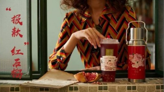 除了推出联名款茶饮“报款”红石榴外,更让消费者惊喜的是,这次联名合作不仅“好喝”还“好玩”。奈雪与人民日报新媒体联名打造的“有为青年看报喝茶”快闪店,9月12日亮相北京、深圳,一北一南遥相呼应,带着消费者来一场穿越70年的品茶之旅。70年国人生活环境变迁与茶饮习惯的更迭,是贯穿快闪店的两条主线。在这里既可以看到刻满生活印记的小油灯、竹斗笠、三转一响、老式电器,还可以体验到不同时代背景下独具特色的茶饮习惯。