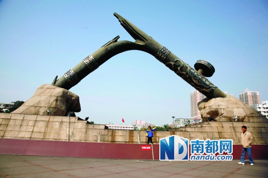 昨日中午,虎门网友微博爆料称,虎门广场烟枪雕塑受暴风雨影响发生坍塌。记者走访发现,雕塑一边底座确实出现裂缝和下沉。虎门住建部门回应,烟枪雕塑并非坍塌,只是在进行纠偏过程中发生倾降,今后将扶正并恢复原状。