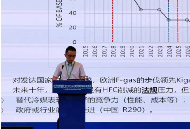 他提到,2019年1月1日,基加利修正案正式生效,全球19个国家批准了该法案,法案提到到2036年,发达国家承诺以1989年尾基础,减少85%的温室气体排放量;到2045年,包括中国在内的大多数国家,减少80%以上的碳排放量。