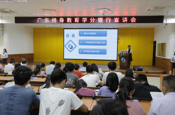 宣讲会上,广东开放大学学分银行管理中心常务副主任李雪婵介绍,广东正在建设省级终身教育学分银行,服务广东全体社会成员,可促进各级各类教育之间的沟通和衔接,搭建人才成长“立交桥”。