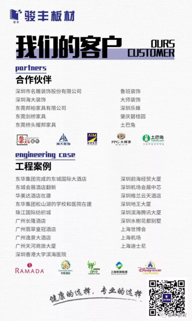 骏丰阻燃板已经和正在用于各地重大酒店、场馆等建设,发挥自身强大的环保阻燃优势,推动阻燃市场更健康、有序发展。
