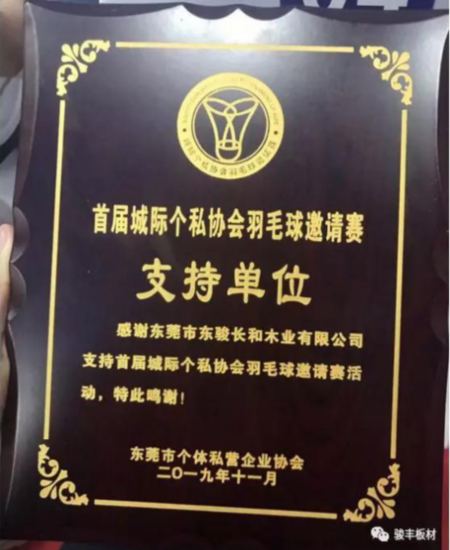 11-12月,骏丰板材赞助支持“华美集团杯”首届城际个私协会羽毛球邀请赛,及冠名赞助企石镇东部的铁岗村篮球比赛。