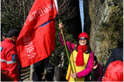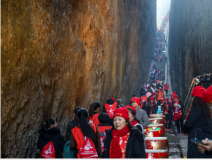 穿越一线天,拾阶而上,江郎之巅尽在眼前。为了助力2020东京奥运会,本次新年登高活动特别设置了“挑战一线天,为中国加油!为奥运助力!”环节。江山的锣鼓队在一线天摆开阵势,一气锣鼓,酣畅淋漓,将登高群众的疲惫一扫而空,大家卯足了劲儿,在加油鼓劲中冲向顶峰。终点的大鼓随即轰然响起,群众们用击鼓的方式传达着他们登顶的喜悦之情,并伴随着震天鼓声呐喊出对中国奥运的美好祝愿。