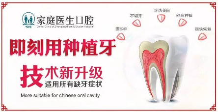家庭医生口腔经过20多年研究,由中外种植牙名医的共同努力下,成功研发出更适合国人的即刻用种植技术。在该技术的支持下,种牙仅有3~4毫米的小切口,将人工牙根“种”入口腔内,摆脱了传统种植牙切开翻起牙肉、缝合、拆线等步骤,实现不翻瓣、不切开、创口小、术后即可进食的特点。最大程度降低疼痛的同时,真正实现即刻负重,即种即用,当天就可以正常吃饭。