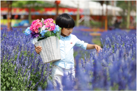 除此之外,还有百合花、薰衣草、桃花、玫瑰花、牡丹花、虞美人、天竺葵、海棠花、飞燕草、紫荆花、风铃木、杜鹃花、茶花、风信子等上百种、数万盆花卉争妍斗艳,徜徉在花的海洋中,分分钟让你流连忘返。