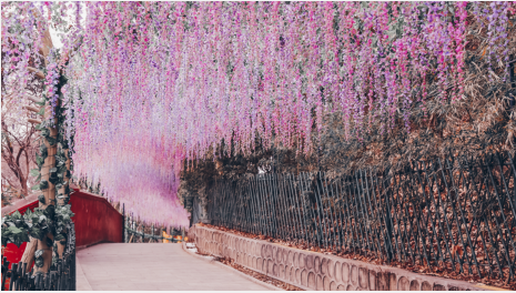 在往年游园会环境布置的基础上,今年红螺寺祈福游园会环境布置增加了新亮点。十里绿色长廊内,缤纷烂漫的紫藤花走廊、充满童趣的风车走廊,为景区增添了一道亮丽的风景线;象征中国传统节日符号的5000多盏员工自制宫灯悬挂在门区及主要游览步道上;牡丹、梅花、桃花等多种颜色仿真花树点染出浓浓春意,寓意吉祥的五福门、福牌,配合中国传统吉祥福带、福贴及火红的色彩寓意幸福美满,渲染出节日喜庆浓烈的氛围。丰富多彩的福文化活动和独具特色的佛家苑林美景,勾勒出“红螺胜景福满天,绿海慈云春满园”的吉祥景象。