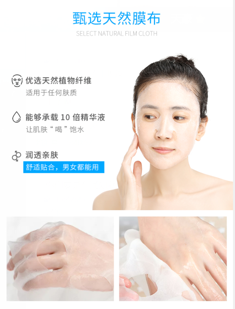 面膜的第一优势是采用优质的天然植物纤维膜布,轻薄透气更强韧,柔软亲肤。立体的剪裁会更服帖紧密贴合脸部轮廓。吸水性强,满载了足量的精华,润透肌底。