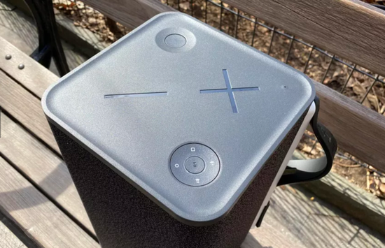 Hyberboom一侧的提手表示了这依然是一款“便携式”蓝牙音箱,在中等音量下,它的电池寿命为24个小时。该扬声器支持四个输入源,两个蓝牙,一个3.5mm备用插孔,还可以连接PC和游戏机。它可以同时连接两台手机,一键切换音源。但需要注意的是,该蓝牙音箱并不支持WiFi。